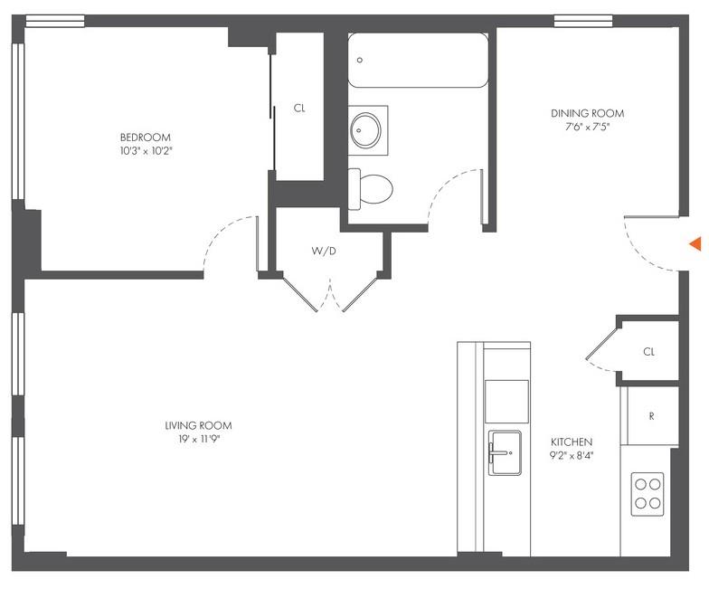 New to the market! Residence 4A is a spacious 1 bedroom, 1 bathroom with a very flexible alcove that could be used as a dining room, home office, nursery.