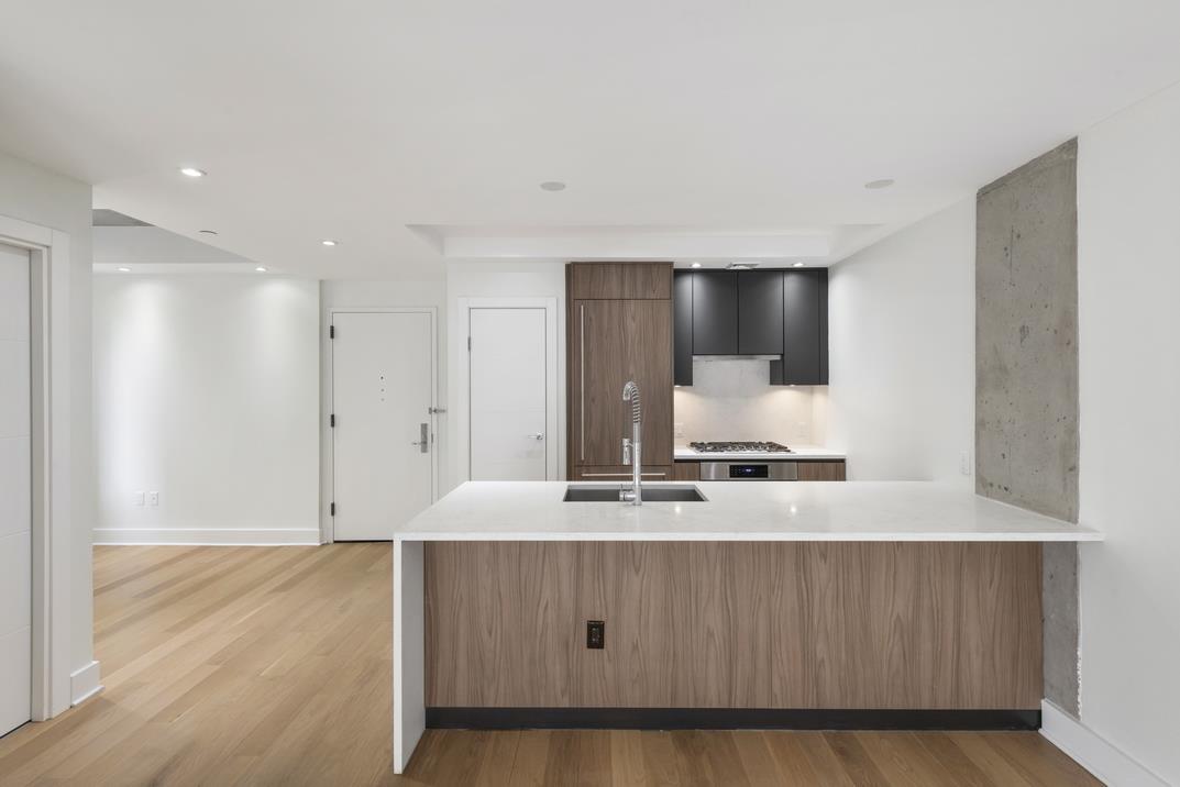 The south facing great room has amazing light, incredible proportions, architectural concrete high ceilings and floor to ceiling windows. The interior finishes and fixtures are modern, timeless, thoughtful with incredible attention to detail throughout featuring wide oak flooring, recessed lighting and a washer dryer. The NYC Cesar designed kitchen is equipped with an eat-in peninsula, sleek quartz counter-tops, custom cabinets, a suite of fully-integrated stainless steel appliances from Bosch.