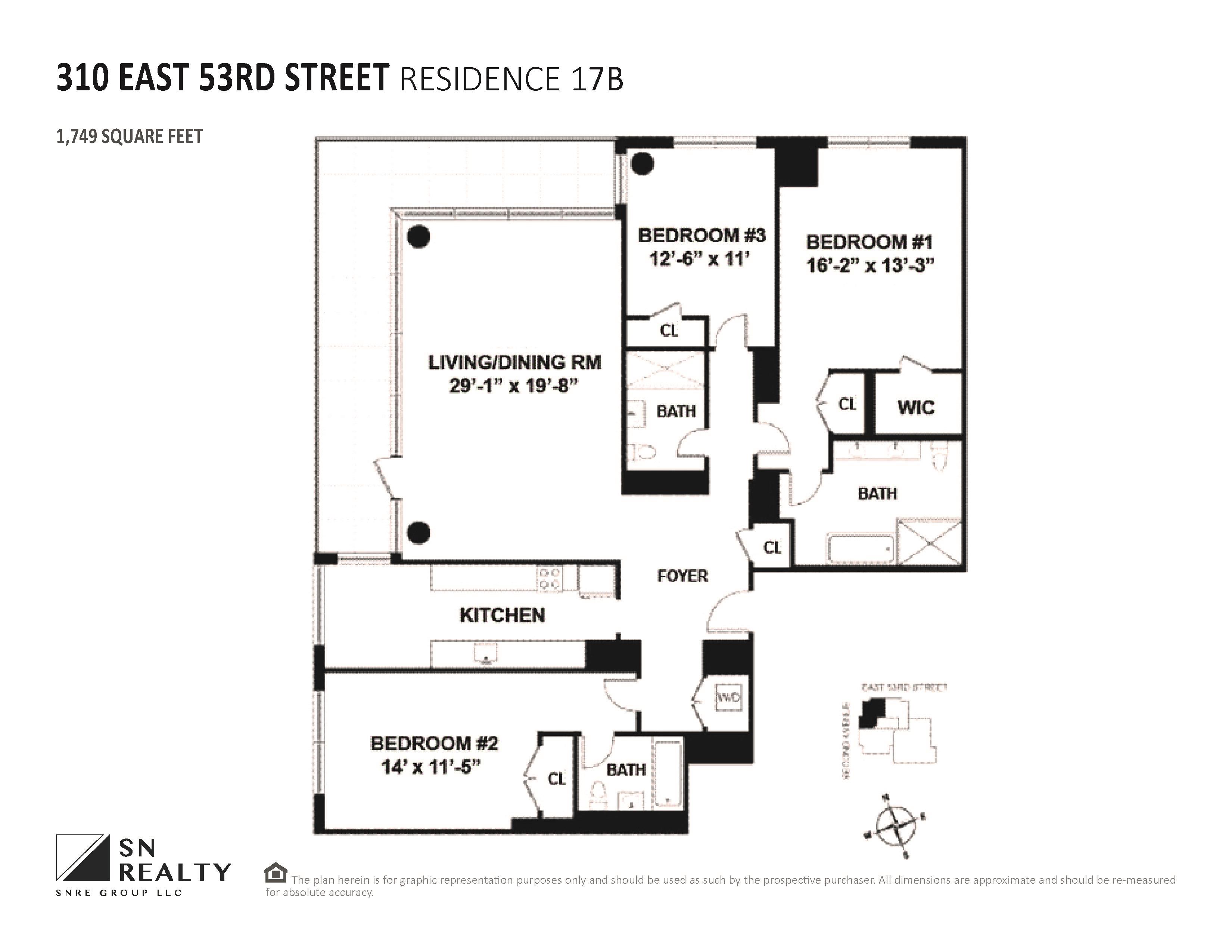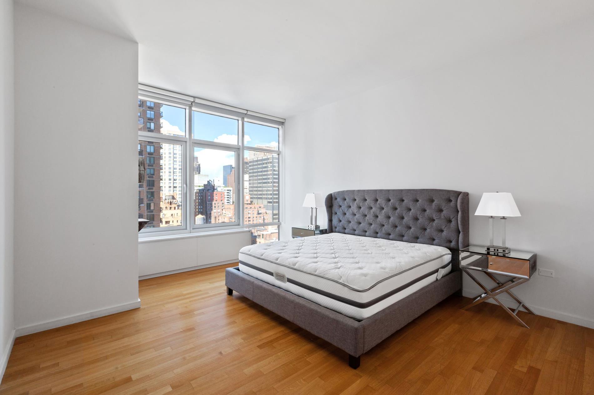 17B is a rare and pristine high floor corner over-sized 3 bedroom, 3 bathroom with 10’ ceilings, elegant finishes throughout that is an incredible value. The 1,749 SF apartment is very spacious with oak flooring, is well organized and faces northwest and receives incredible light through the floor to ceiling windows highlighting the Manhattan skyline views.