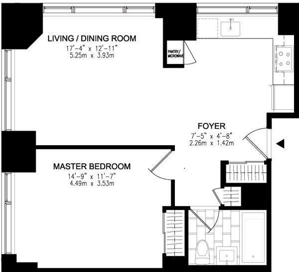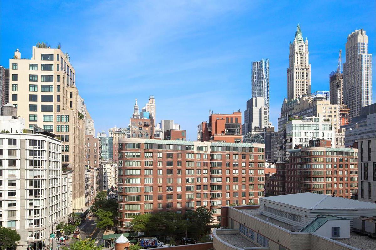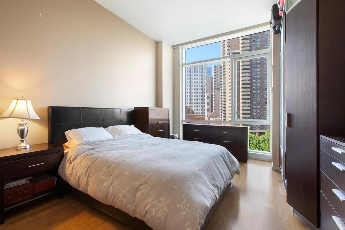 HIGHEST CORNER full glass & sun soaked 1BR apartment at 200 Chambers – new to the market and a must see. Three exposures, CORNER loft feeling luxurious condo featuring 11 foot ceilings plus extensive custom floor to ceiling closet casework! Gorgeous and rarely available oversized 1 bed and 1 bath high end residence in mint condition available immediately. Residence 7P is a bright and spacious corner with unobstructed views, sightlines, river views highlighted by a NE exposure. The apartment receives a ton of direct and natural light throughout the day. The apartment is graced with floor to ceiling windows and 11 foot ceilings (only on 3 floors in the building) adding to the volume and spaciousness. The apartment is move-in ready with upgraded custom closets that make living here feel like the closet space you would find in a 2 bedroom which is ideal for a couple and the window coverings are in place. The windowed and open kitchen features Viking, Subzero and Bosch stainless steel appliances. The bathroom features an elegant marble vanity and a deep and oversized soaking tub.